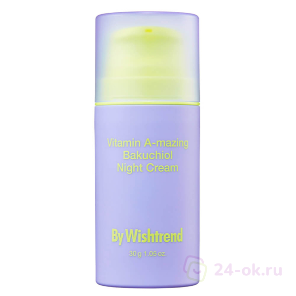 Ночной омолаживающий крем By Wishtrend Vitamin A-mazing Bakuchiol Night Cream уменьшает глубину морщин и предотвращает их появление, выравнивает микрорельеф, повышает эластичность, помогает в борьбе с акне, увлажняет.