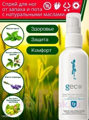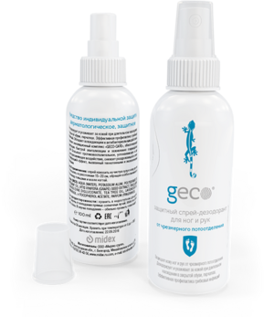 GECO Защитный спрей-дезодорант для ног и рук от чрезмерного потоотделенияс антибактериальным эффектом (флакон 100 мл.)