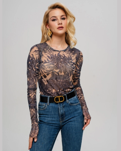 Лонгслив из сетки с круглым вырезом 457.4.7