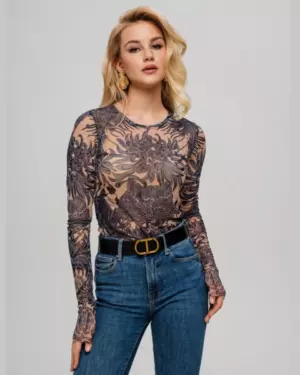 Лонгслив из сеточки очень приятен для тела. Он как будто обволакивает кожу. Материал мало тянется. Авторский рисунок и оригинальный дизайн помогут вам создать яркий неповторимый образ. Модель выполнена из мягкой и нежной сетчатой ткани, которая ощущается на теле очень комфортно. Материал из полиэстера тонкий и легкий, дышащий.