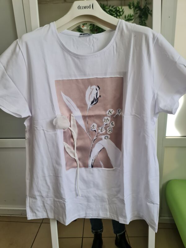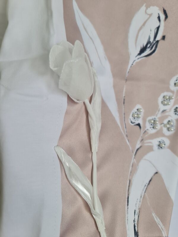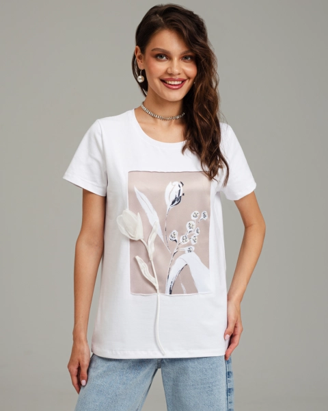 Футболка с шёлковой вставкой и объёмными цветами FSC002