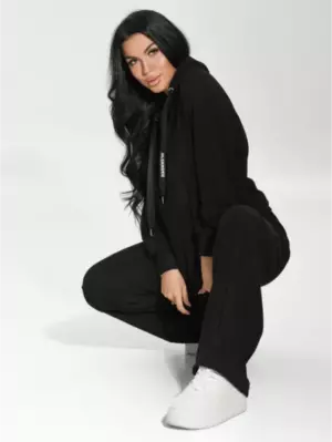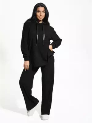 Ряд: 44-58, Состав: 65% вискоза ; 25% кашемир ;10% эластан, Ткань: кашемир лапша, Цвет: черный Описание Женский костюм Астория – идеальный вариант для путешествий, прогулок с друзьями, отличный выбор для отдыха! Ткань кашемир лапша очень приятна к телу, мягкая и дышащая, несмотря на сочетание искусственных и синтетических волокон. Костюм женский состоит из кофты и брюк с карманами. Кофта с капюшоном, прямого кроя с втачным длинным рукавом и спущенным плечом. Штаны широкие на резинке.