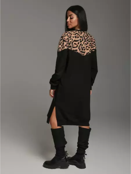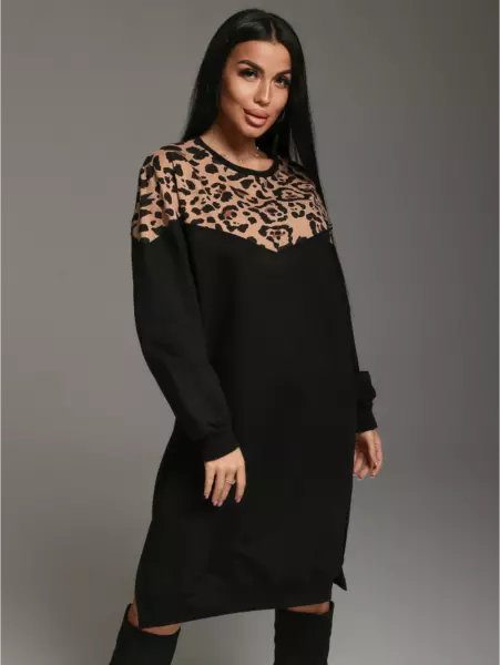 Ряд: 46-60, Состав: 95% х/б; 5% лайкра, Ткань: футер двунитка с лайкрой, Цвет: леопард Описание Платье прямого силуэта, c длинным втачным рукавом на манжете. Представляем вам платье женское спортивное, отличное решение для осеннего гардероба. Это теплое изделие создано для того, чтобы обеспечить комфорт и стиль в прохладную погоду. Платье идеально подходит для создания образа как для повседневной носки, так и для более торжественных событий.