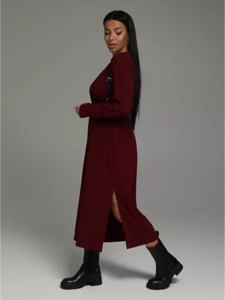 Ряд: 50-60, Состав: 65% вискоза ; 25% кашемир ;10% эластан, Ткань: кашкорсе лапша кашемир, Цвет: бордо Описание Платье женское миди с разрезом - идеальный выбор для осеннего и весеннего сезонов. Изготовлено из качественного материала - турецкая лапша кашемир, оно мягкое бархатистое и приятное к телу. Изделие прямого силуэта со спущенной линией плеча и длинным рукавом, что делает его модным и современным. Боковые швы дополнены разрезами по низу, что придает платью особый шарм и добавляют нотку сексуальности.