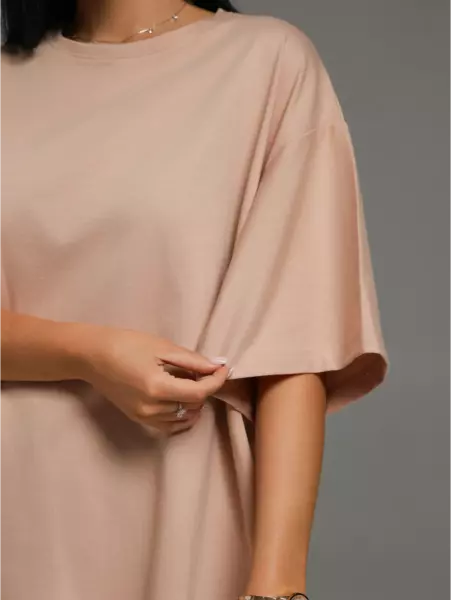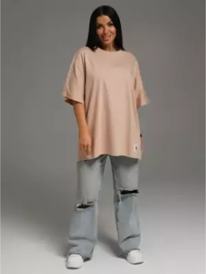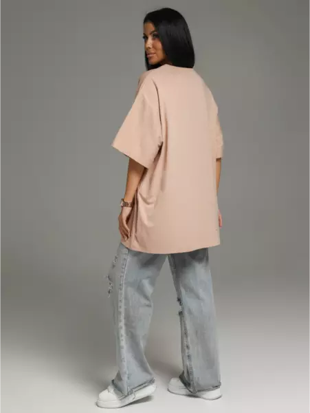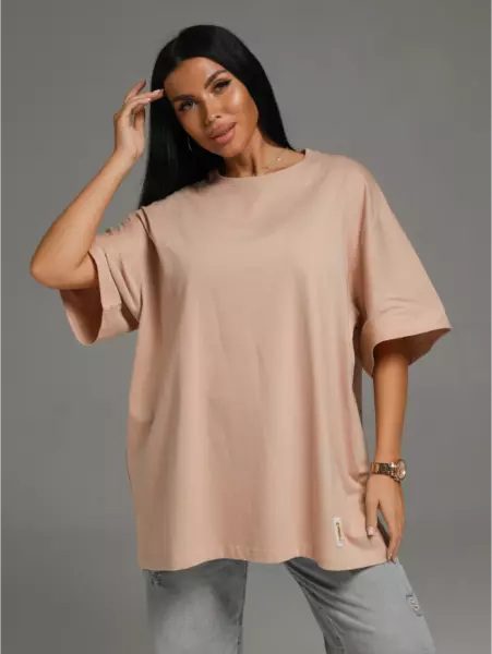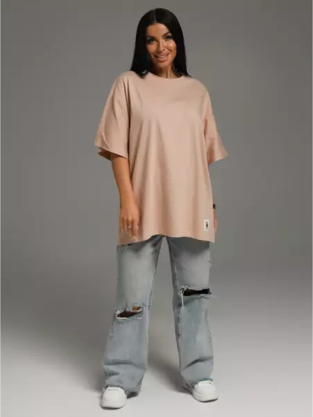 Ряд: 44-66, Состав: 100% х/б, Ткань: кулирка, Цвет: бежевый Описание Футболка oversize с коротким втачным рукавом.