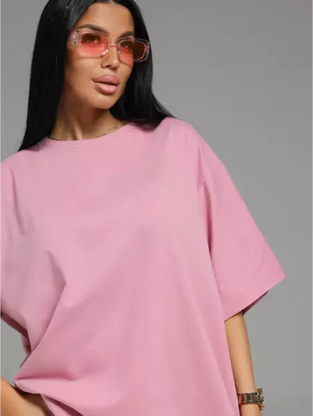 Ряд: 44-66, Состав: 100% х/б, Ткань: кулирка, Цвет: лиловый Описание Футболка oversize с коротким втачным рукавом.