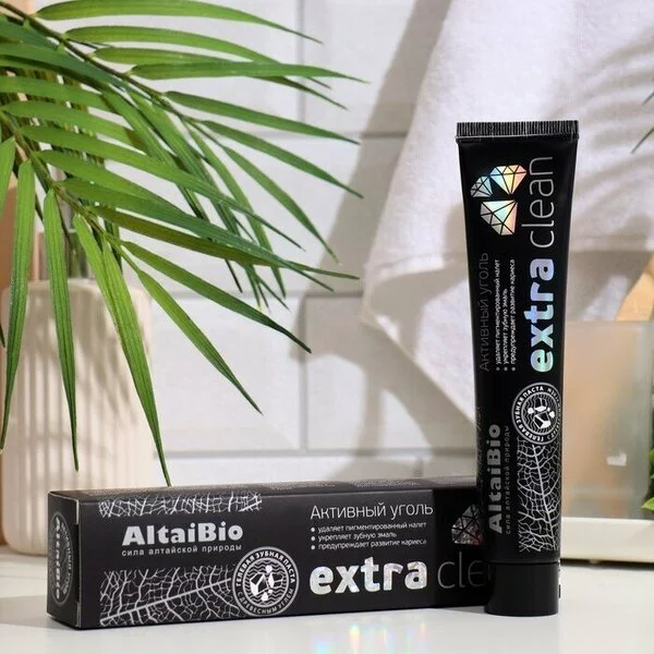 Зубная паста «AltaiBio» «Активный уголь» создана для деликатного и бережного отбеливания эмали и комплексной профилактики кариеса за счет воздействия четырех активных компонентов: ксилита, активированного угля, папаина и комплекса Cosphaderm® Magnolia Extract 98.
