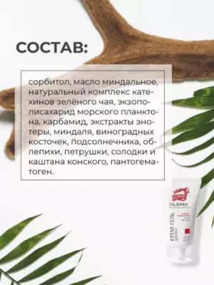 эффективно успокаивает нежную кожу век разглаживает мелкие морщинки восстанавливает естественный уровень увлажненности Активные компоненты: сорбитол, масло миндальное, натуральный комплекс катехинов зеленого чая, экзополисахарид морского планктона, карбамид, экстракты энотеры, миндаля, виноградных косточек, подсолнечника, облепихи, петрушки, солодки и каштана конского, пантогематоген. Экстракт петрушки снимает воспаление, осветляет кожу, устраняет темные круги под глазами, уменьшает отечность. Экстракт каштана укрепляет стенки капилляров, повышает тонус сосудов, стимулирует кровообращение в коже век. Способ применения: легкими движениями нанести крем-гель на кожу вокруг глаз, рекомендуется использовать утром и вечером. Объем: 30 мл Срок годности: 18 месяцев