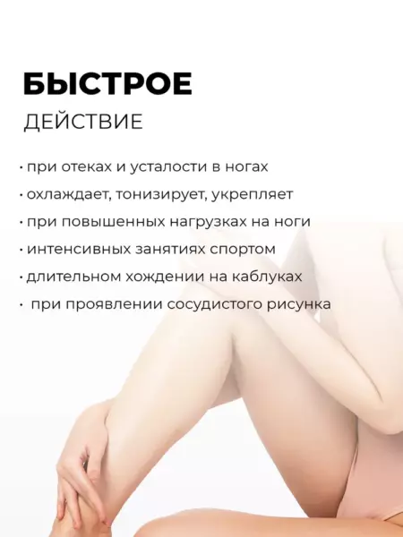 Рекомендуется использовать при повышенных нагрузках на ноги, интенсивных занятиях спортом, длительном хождении на каблуках, при проявлении сосудистого рисунка.