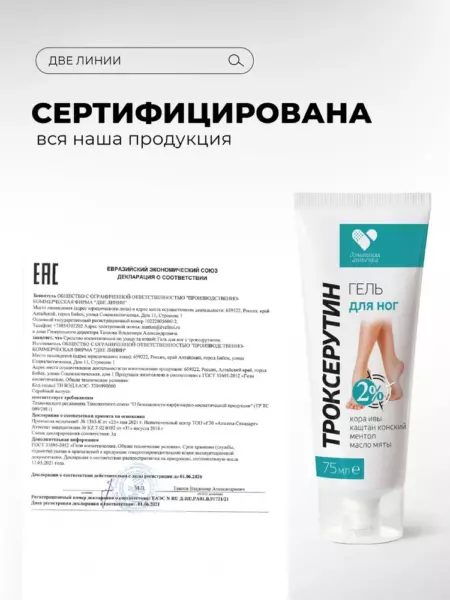 Применяется как косметическое вспомогательное средство при отеках, статической тяжести и усталости в ногах.