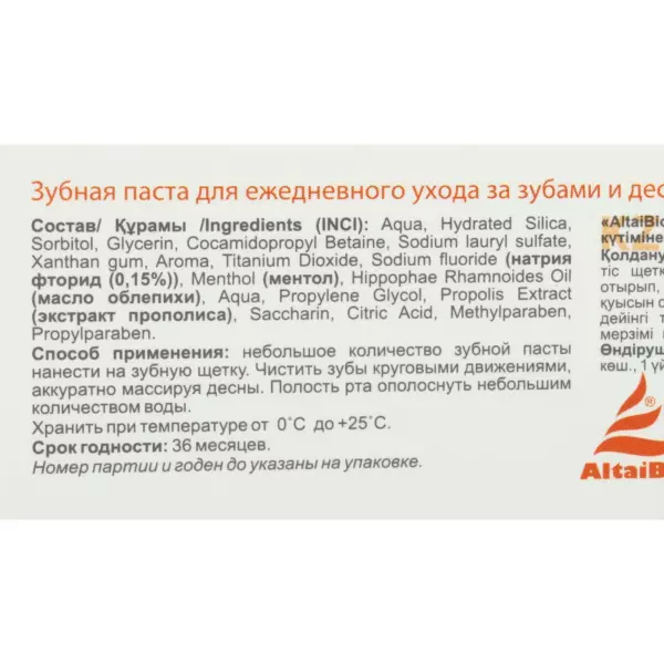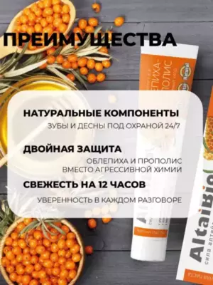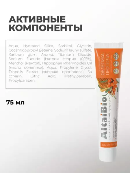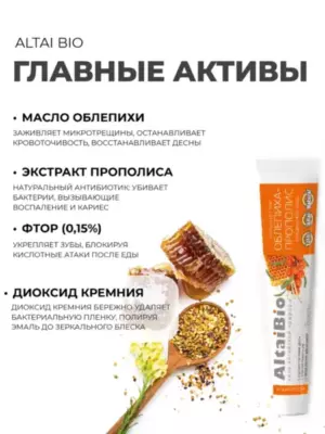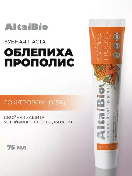 Алтайбио Зубная паста "Облепиха - прополис", для ежедневного ухода за зубами и деснами