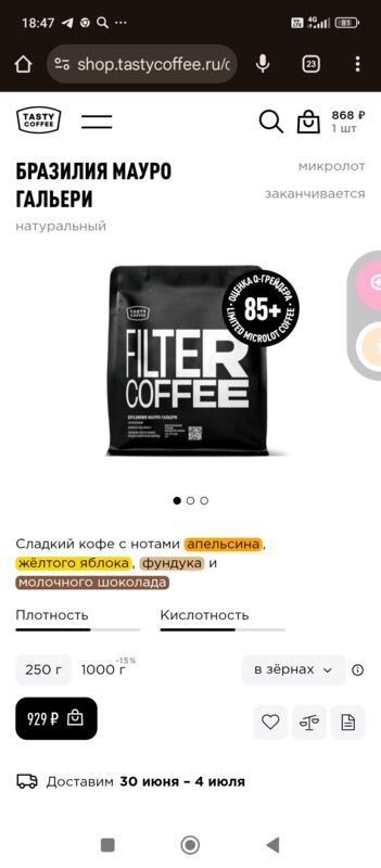 Совет: купите и попробуйте этот кофе, очень рекомендую.