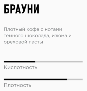 Плотный кофе с нотами тёмного шоколада, изюма и ореховой пасты.