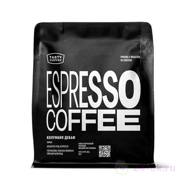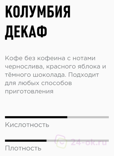 Кофе без кофеина с нотами тёмного шоколада, чернослива и яркой кислотностью красного яблока. Подходит для любых способов приготовления