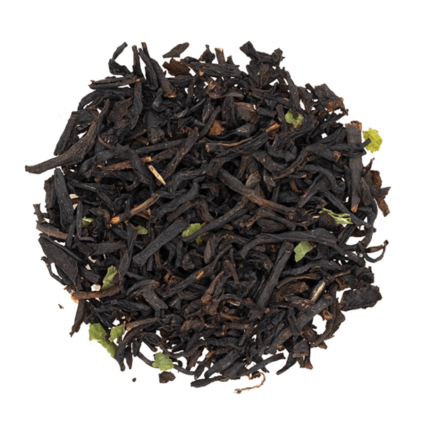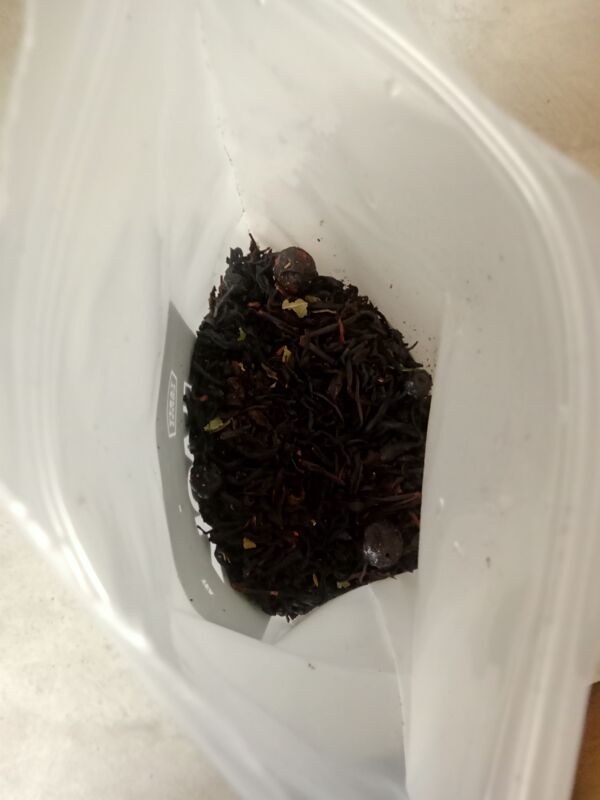 Черный цейлонский и индийский чай с листочками и ягодами черной смородины. С добавлением натурального ароматизатора.