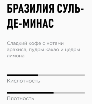 Сбалансированный вкус - это когда нет выраженной горечи и кислинки. Бразилия Суль-Де-Минас - это самый базовый кофе в линейке, который имеет ровный и сбалансированный вкус. Обжарка средняя.