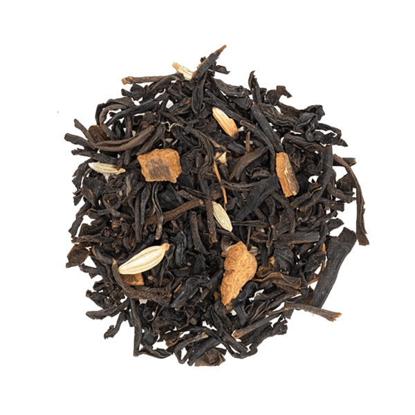 Черный крупнолистовой чай с корицей, анисом, фенхелем, имбирём, гвоздикой и черным перцем с добавлением натурального ароматизатора.