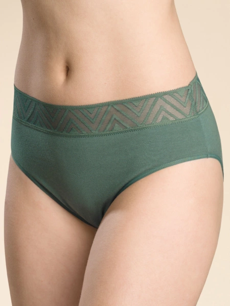 Состав: 93%хлопок 7%эластан, вставка: 88%полиамид 12%эластан Женские трусы-слипы с высокой посадкой. Приятная на ощупь ткань с высоким содержанием хлопка и небольшим содержанием эластана – трусы сохраняют форму и не выцветают даже после частых стирок. Мягкая широкая обработка по линии талии кружевным эластиком – не вызывает дискомфорта и не передавливает тело. Нежное геометричное кружево актуально в этом сезоне. Модель подчеркивает изящество фигуры и создаёт комфорт. Идеально подходят для повседневной носки, для сна и для романтических встреч. Модель представлена в универсальных цветах – черный, белый, бордовый, джинс, зеленый, морская волна, песочный и пудра. Выбирайте нужный размер по таблице размеров на фото. Цвет товара на экране вашего устройства может отличаться от цвета изделия вживую. Товар возврату и обмену не подлежит.