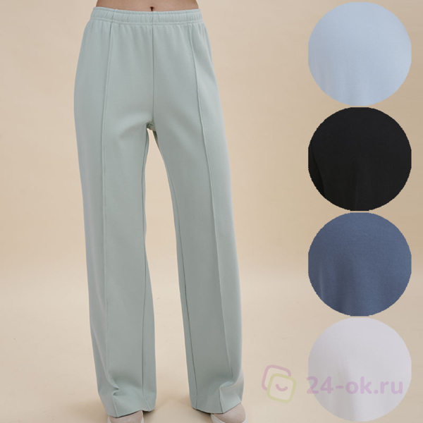 Состав: 92%хлопок 8%эластан Стильные брюки женские со стрелками по переду. Актуальная модель — брюки плотно садятся по бёдрам, а от бедра – небольшой клёш. Комфортная модель подходит для разных типов фигуры, не сковывает движений. Вертикальные строчки по переду визуально вытягивают силуэт и стройнят. Брюки лаконичного дизайна, без застёжки и карманов. В поясе мягкая и широкая резинка — не давит и не перекручивается. Брюки однотонные, без принта. За ними просто ухаживать. В составе ткани преобладает высококачественный хлопок — штаны мягкие и воздухопроницаемые. Эластан помогает изделию сохранять первозданную форму в течение долгого времени. Женские трикотажные брюки представлены в следующих актуальных цветах: чёрном, голубом, синем, зелёном, белом. Размерная линейка: XS (42): S (44): M (46): L (48): XL (50). Брюки подходят женщинам, девушкам, девочкам-подросткам. Их можно носить на работу, учёбу, они идеальны для отдыха, прогулок, а также как домашние брюки. Подходят для лета и демисезона (осень и весна). Женские брюки на резинке легко комбинировать с разнообразными джемперами, свитерами, футболками. Женские летние брюки — это отличный подарок сестре, маме или подруге на любой праздник. Выбирайте нужный размер по таблице размеров на фото. Цвет товара на экране вашего устройства может отличаться от цвета изделия вживую.
