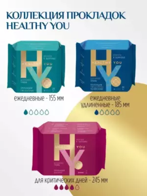 Ежедневные удлиненные прокладки Healthy you - премиальная забота о женском здоровье каждый день. Длина увеличена до 18 сантиметров, что на 3 см длиннее обычных.