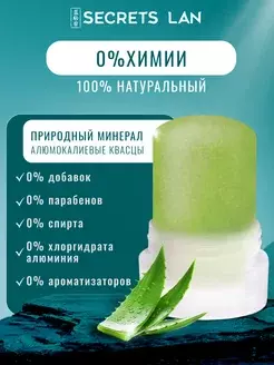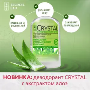 Натуральные минеральные дезодоранты кристалл гипоаллергенны и безопасны. Они не содержат вредных веществ, таких как хлоргидрат алюминия и парабены. В состав входят только 100% алюмокалиевые квасцы (алунит) с добавлением экстракта алоэ вера. Он увлажняет и заживляет повреждения.