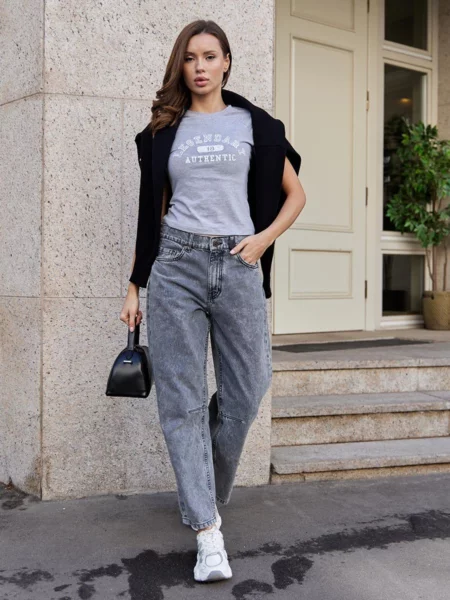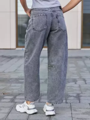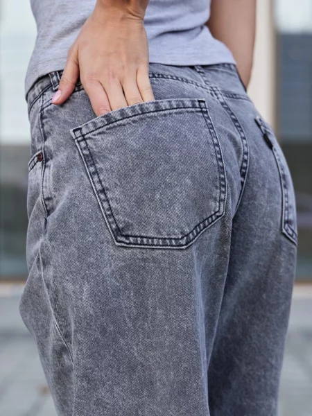 Джинсы Barrel (Бочка) - тренд сезона! Укороченные джинсы модного кроя Barrel с вытачками на коленях создают идеальный объемный силуэт "бочонка" - широкие в бедрах и плавно сужающиеся к низу. Это создает современный и очень стильный геометрический образ. Вытачки в области колена по внутреннему шву не просто являются дизайнерской изюминкой, но и дополнительно подчеркивают требуемый силуэт бочонка и обеспечивают идеальную посадку по ноге, сохраняя форму джинсов при движении. Укороченная длина "анкл" (ankle-length) визуально делает образ легче и современнее и идеально подходит для создания настроения легкой небрежности. Изготовлены из черного денима. Специальная стирка towel wash позволяет получить особый винтажный вид ткани с легким мраморным эффектом. Эта модель - идеальная пара для современных стильных и смелых образов. Рекомендации по уходу * * * * * Стирать в стиральной машине при температуре 30° Не использовать отбеливатель Ручная стирка при температуре 30° Гладить при минимальной температуре Химчистка недопустима