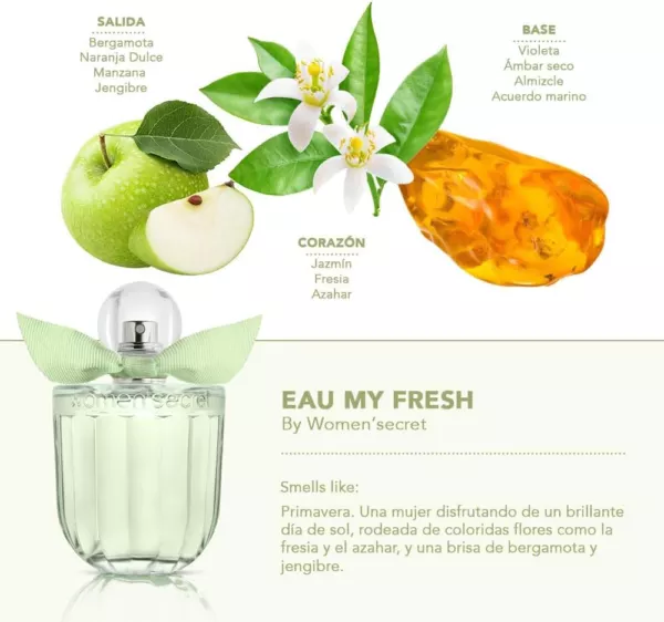 Аромат Eau It's Fresh обладает освежающим цветочно-цитрусовым звучанием. Он стал воплощением удивительной кристальной свежести яркого солнечного дня в окружении распускающихся весенних цветов. Композиция соткана из цветов, приправленных цитрусовыми акцентами с умеренными пудровыми нотами, в окружении легких древесно-ароматических оттенков.