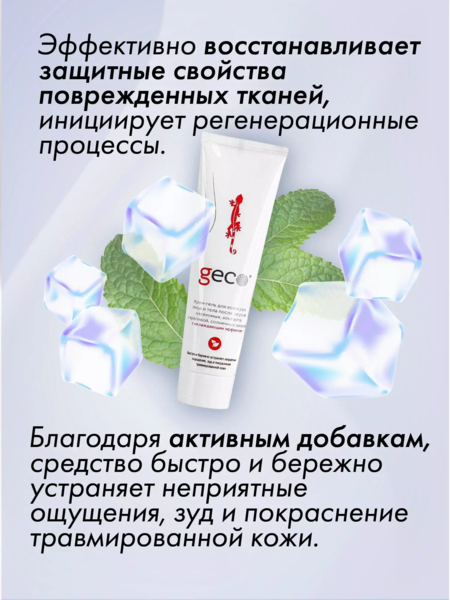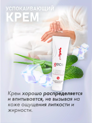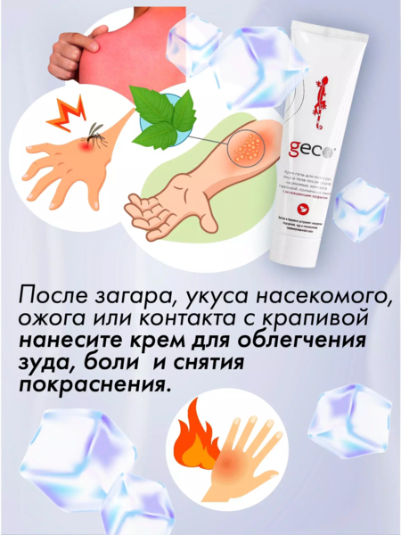 GECO Крем-гель для кожи рук, лица и тела после укусов насекомых, контакта с крапивой, солнечных ожогов с охлаждающим эффектом 100 мл.