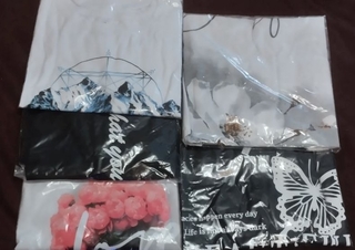 Второй сорт (незначительные дефекты). В бокс входят 5 футболок черных и белых с разными принтами. Состав бокса может отличаться от изображения. В одном боксе один размер ВНИМАНИЕ!! Могут входить как только черные, так и только белые, могут попасться с одинаковыми принтами все 5 штук! Кому как попадется. Выбрать принты нельзя. Обмену и возврату не подлежат!