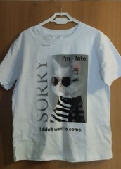 Размер футболки 54, замеры - ширина 58см, длина спинки от обтачки 63см, ширина рукава 20см, длина с плечом 36см, ширина горловины (по прямой) 21,5см.