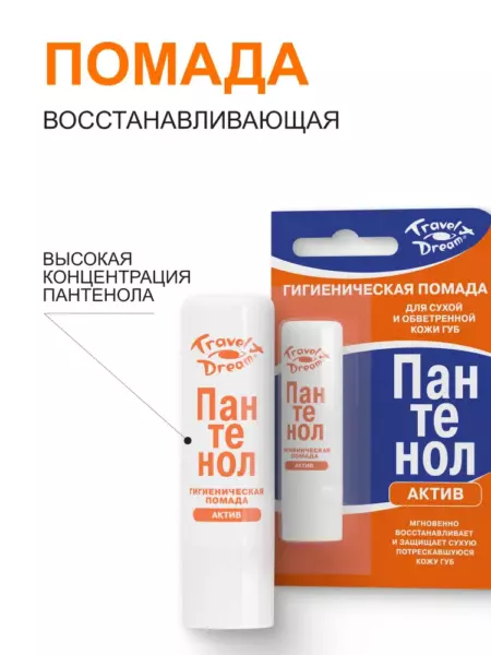 TRAVEL DREAM гигиеническая помада восстанавливающая "Пантенол-актив", 4 г