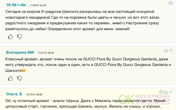 Запах "Шанситы" - шипровый,цветочный. Он - для тех, кто всегда в гармонии с собой, уверенных в своих силах. Аромат еще больше подчеркнет вашу элегантность и притягательность. Начало аромата открывается нотами цветов и фруктов - ананаса,гиацинта,ириса и розового перца, которые наполняют жизненной энергией. В сердце звучат ноты бергамота, жасмина и розы. Шлейф аромата наполнен нотами пачули, ванили и мускуса, которые придают композиции особую изысканность и завершенность.