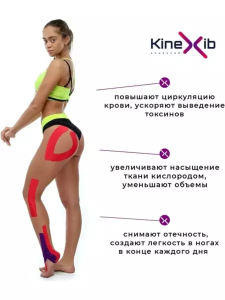 Кинезио тейпы Kinexib применяются для лечения и реабилитации суставов, мышц и связок в спорте, медицине и в домашних условиях.
