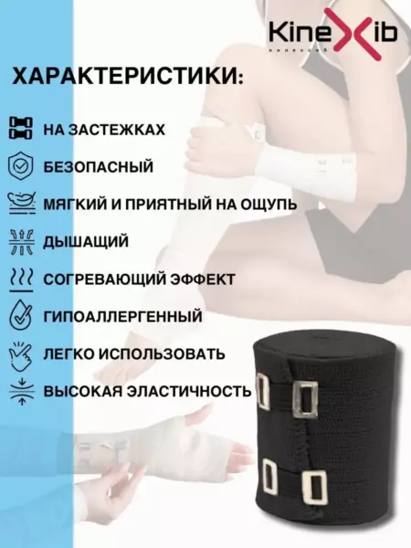 Эластичный бинт мягко поддерживает, оказывает умеренную компрессию и легкий согревающий эффект. Фиксация бинтом физиологична: не нарушает крово- и лимфоток и сохраняет полный объем движений. Эластичный бинт Kinexib на 67% состоит из нейлона: он износостойкий, мягкий, дышащий и обладает высокой растяжимостью. Состав бинта обеспечивает отличное качество и износостойкость даже при длительном и интенсивном использовании.