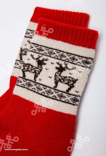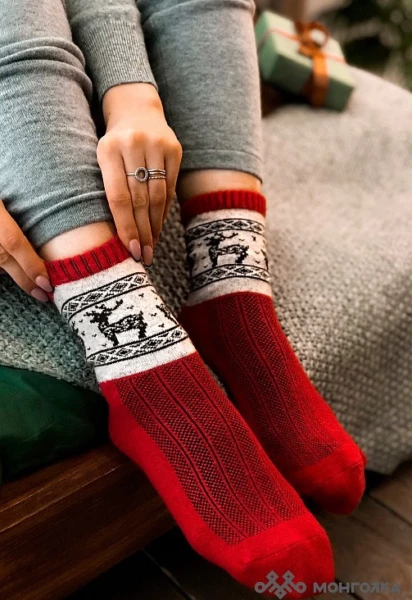 Носки из овечьей шерсти сохраняют ноги в тепле в любую погоду, при этом аккуратно смотрятся и плотно облегают стопу. В шерстяных носках ногам будет комфортно, ведь они хорошо фиксируются и не стесняют движение, приятные на ощупь и не колются. Носки из шерсти монгольской овцы износостойкие и будут радовать долгое время, связаны в технологии двойной вязки, а на подошве толщина материала увеличена. В составе носков 70% натуральной овечьей шерсти, которая обладает обезболивающими, противовоспалительными свойствами, из-за чего носки помогут при болях в суставах. Из-за свойств натуральной шерсти носки отводят лишнюю влагу и дарят чувство тепла и сухости в любую погоду. Теплые носки сочетаются с любым образом, поэтому в них будет приятно ходить как дома, так и надевать с зимней обувью. Носки подойдут как мужчинам, так и женщинам и станут приятным подарком для близких. В нашем ассортименте вы найдете еще больше товаров из натуральной шерсти, доставленных напрямую из Монголии. * Производитель: Монголия, TOD * Состав: 70% шерсть монгольской овцы, 30% вискоза * Размер: 34-45 * Цвет: красный с рисунком * Полноразмерные, соответствуют размеру обуви * Укрепленная стопа