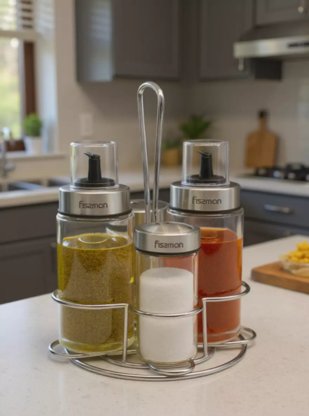 6435 FISSMAN Набор для масла и специй 5пр. 2/170мл и 2/90мл (стекло)