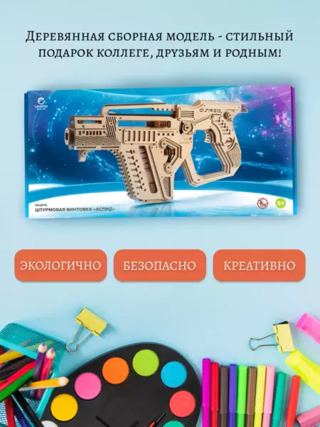Экологически чистый и качественный конструктор, который собирается с минимальным использованием клея. Набор будет интересен не только малышам, но и взрослым. Конструктор способствует развитию мелкой моторики, предметного моделирования, а также воображения, пространственного мышления и логики. Вы приятно проведёте время за сборкой, а готовая модель послужит не только игрушкой, но и стильным украшением интерьера!