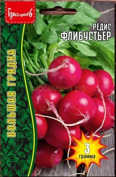 Скороспелый, слабооблиственный, высокопродуктивный сорт. Корнеплод округлой формы, диаметром 5 см, с гладкой поверхностью, красного цвета. Масса корнеплода 30-40г. Мякоть белая, сочная, слабо-острого вкуса, долго не дрябнет. Образует стандартный корнеплод через 20-25 дней после появления всходов. Урожайность 3,2-3,4 кг/м2
