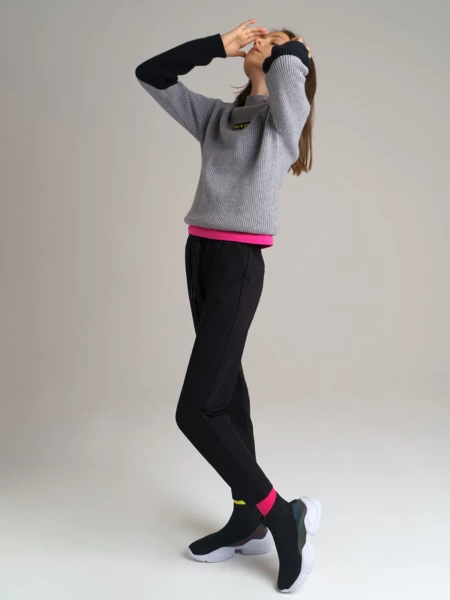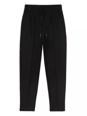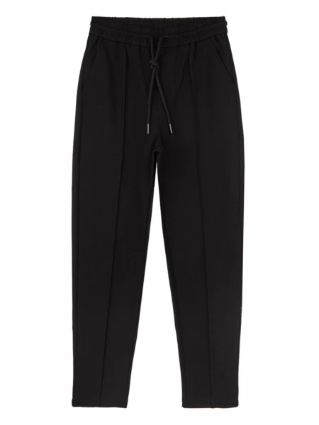 Брюки трикотажные комфортной посадки зауженные книзу. Эластичный пояс с тесьмой позволяет легко надевать и утягивать до идеальной посадки в зависимости от комплекции. Застрочена идеально ровная стрелка.