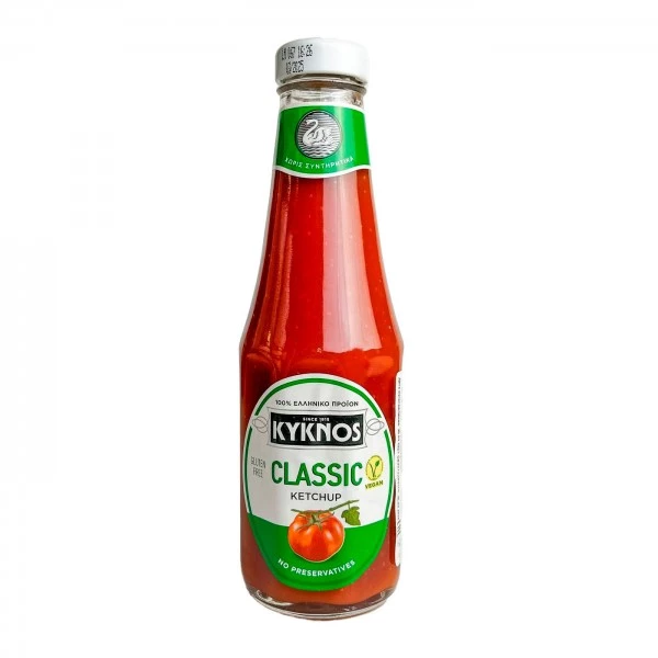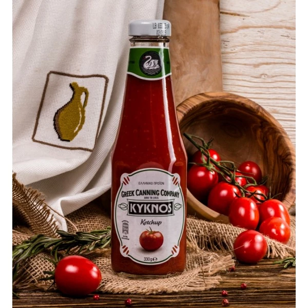 Кетчуп томатный сладкий Kyknos в стеклянной бутылке, 330г.