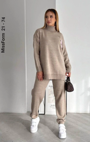 Элегантные базовые костюмы водолазка со штанами