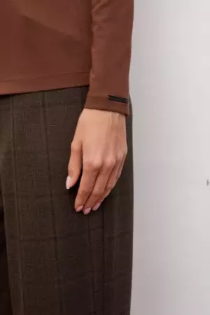 Такой лонгслив — универсальная база: он одинаково стильно смотрится в сочетании с жакетами и жилетами или как самостоятельный лаконичный верх.