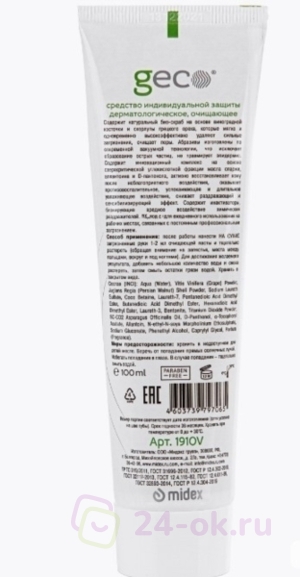 GECO Паста специальная для очистки кожи рук от сильных загрязнений(туба 100 мл.) ЛАМИНАТ С ВИНТОВОЙ КРЫШКОЙ