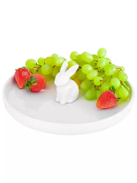 Сервировочное круглое блюдо Elan Gallery "Кролик" размером 22х22х7,4 см станет украшением интерьера вашей кухни, столовой или комнаты. Декоративная тарелочка изготовлена из фарфора, имеет бортики и украшена фигуркой белого зайчика. Высота бортика по краю тарелки 2,3 см. Тарелку можно использовать для подачи закусок или сладостей. Поставьте блюдо для сервировки на стол, чтобы симпатичный зверёк каждый день радовал вашу семью. На празднике гости точно оценят красивую подачу сыра, колбасы, мясной нарезки, нарезанных овощей или фруктов! Удобна для сервировки канапе, бутербродов или рыбы. Не рекомендуется применять абразивные моющие средства. Можно использовать в микроволновой печи и посудомоечной машине. Поставляется в стильной картонной упаковке. Красивая посуда станет отличным подарком на любой праздник. Сервировочное блюдо украсит ваш дом и поможет создать в нём атмосферу тепла и уюта. В коллекции бренда Elan Gallery вы найдёте множество как ярких, так и нежных декоративных украшений – каждый обязательно подберёт сувенир на свой вкус. Они станут чудесным подарком для родных, близких и коллег. Наполните пространство вокруг себя уютом и эстетикой!
