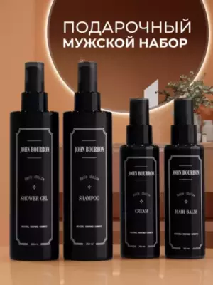Набор мужской уходовой косметики "John Bourbon"(большой)(шампунь, гель для душа, бальзам для волос, крем для лица)