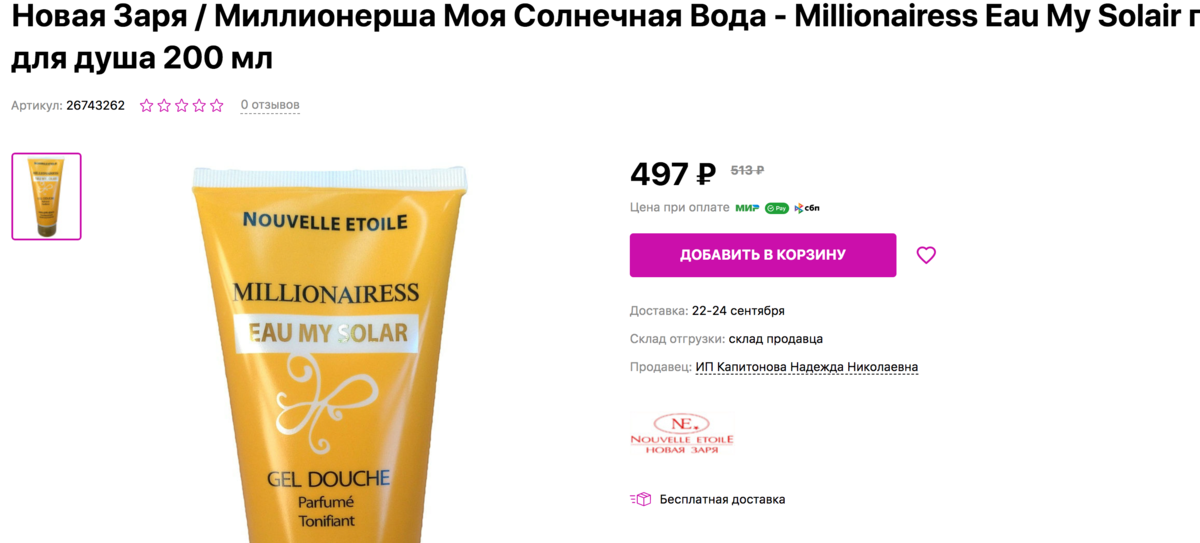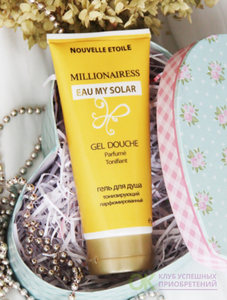 Миллионерша Моя Солнечная Вода гель для душа обладает легкой и нежной текстурой, которая легко распределяется по коже и быстро впитывается, не оставляя ощущения стянутости или сухости.