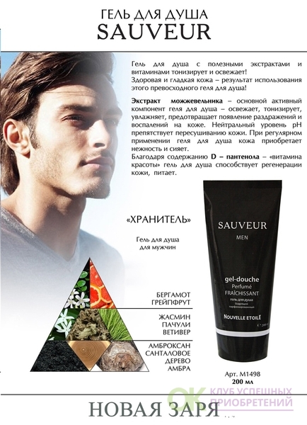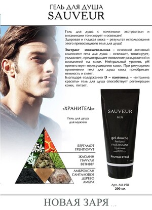 Мужской гель для душа от Новой Зари насыщенный парфюмированный и бодрящий гель для мужчин. Идеально смягчает, очищает и тонизирует кожу, придавая ей упругость, мягкость, свежесть и красоту.