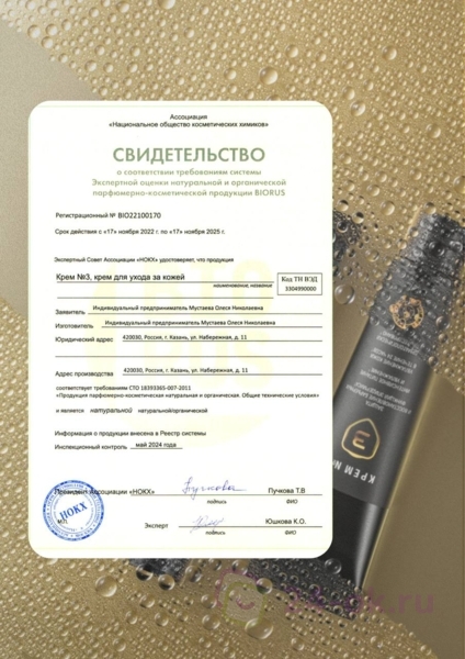 Состав: вода очищенная, масло макадамии, воск дерева ним, масло рисовых отрубей, комплекс церамидов, масло карите, натуральный увлажняющий фактор, воск пчелиный, витамин F, экстракт жимолости японской, комплекс экстрактов (ромашка, малина, калина, лаванда), смесь токоферолов, бета-ситостирол, сквален (растительный). Срок годности: 1 год с даты изготовления. Хранение: в закрытой таре в прохладном месте.