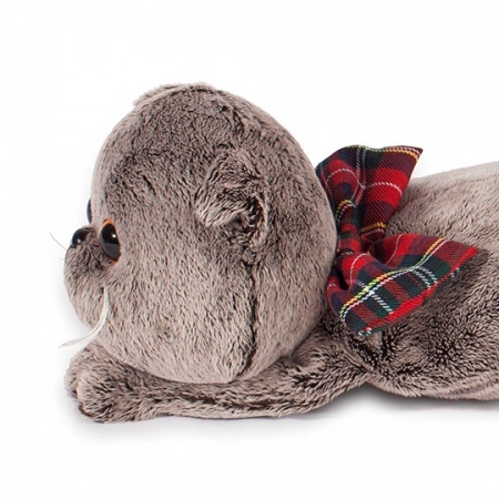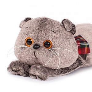 Кот-подушка с бантом из ткани в клетку.