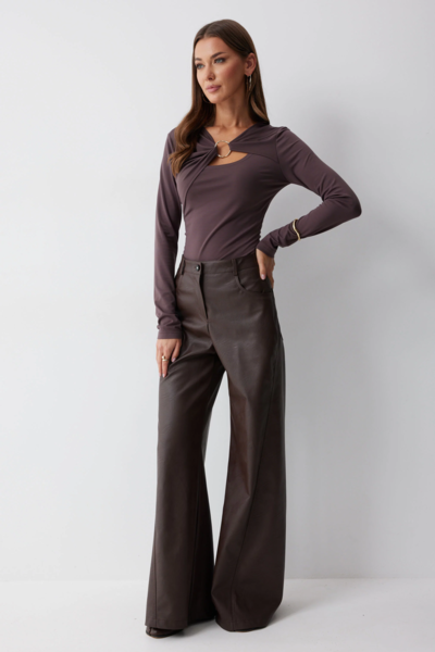 Джемпер прилегающего силуэта из трикотажного полотна. Горловина с фигурным вырезом декоративными складками и фурнитурой. Рукав втачной удлиненный . Обращаем ваше внимание, что фурнитура может отличаться от фото.